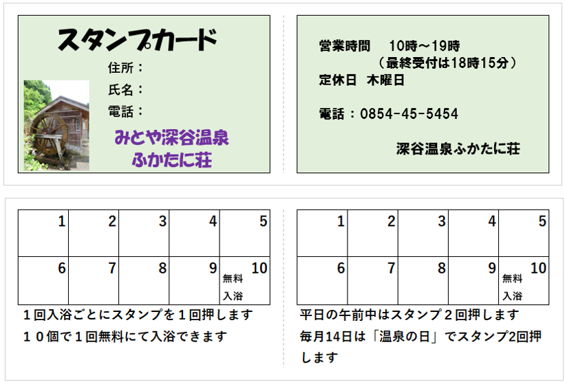 ※毎月14日は<温泉の日>としてスタンプ2個。