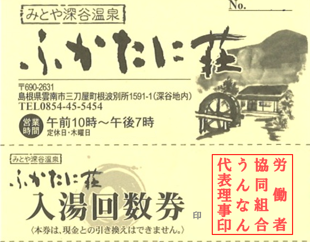 ※回数券のお買い求めは、「みとや深谷温泉受付」または