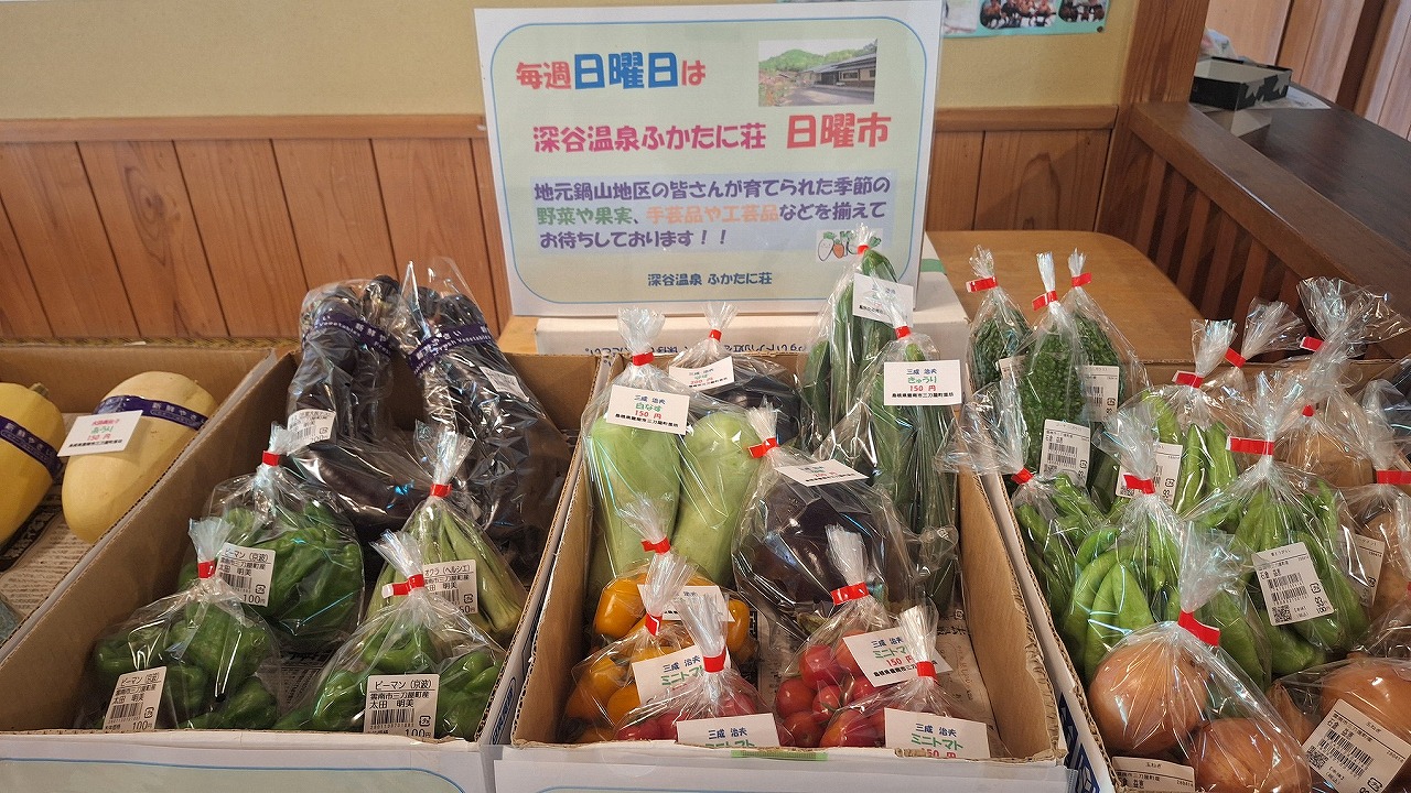 - 毎週日曜日に<日曜市>を開催し、地元の住民さんが育てられた季節の野菜や、手芸品・工芸品などを販売しています。