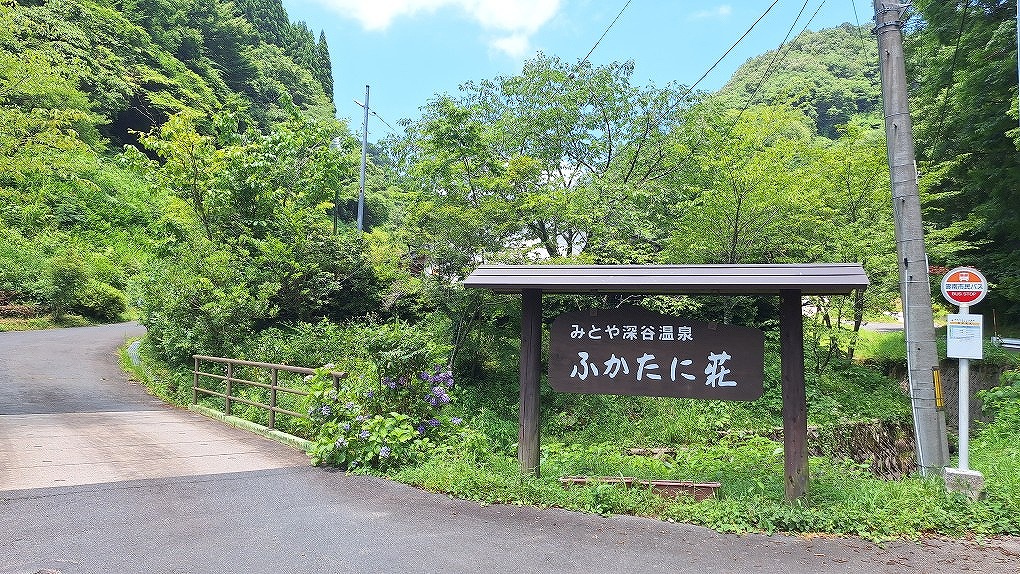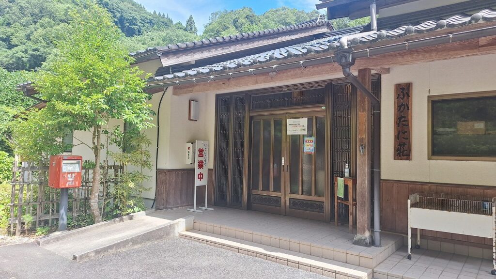 - 源泉は、ふかたに荘から約200メートルほどの場所にあり、約400メートルの深さから湧いており、温度は16.8℃の冷泉です。